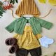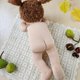 娃娃穿着棉质尿布、棉裤、连身裙、针织棉质开襟外套、针织棉帽和钩针编织的鞋靴。