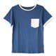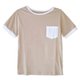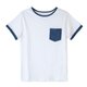 - 选用手感柔软的纯棉布,袖、领口罗纹剪接,配色口袋,小日子“A good little day”手写图腾。