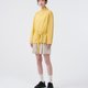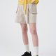 立体口袋与褶子设计,搭以具挺度岩石织纹纯棉布料,建构出结构式轮廓,后片剪接手法使款式更修身。两侧腰头设置松紧带,使款式更具宽容度。