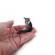 一只舔着爪子的小条纹猫。这个微型玩具是由天然羊毛制成的。玩具内部有一个铁丝框架,所以尾巴和爪子的位置可以稍微改变。