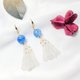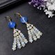 本件严选顶级玉化蓝晶石,多层次的蓝色调,美得无与伦比,相佐净体蓝月光石编流苏,宝石水润净透、色彩蓝的很有韵味,不同角度能闪现蓝光、彩虹星光,很是舒心,整体华美富丽、气宇不凡。