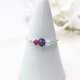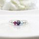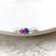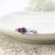 由红宝石、堇青石和海蓝宝石这三种天然宝石制成的金属丝戒指。