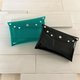 - We created a flap flat pouch using clear PVC material. The flap part is scalloped for a cute look. It opens and closes with a snap button. The flap part has Italian studs that are also used by famous brands.