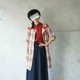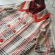 - →复古学院风红色系格纹 →复古滚边翻领/澎袖设计 →下摆抽皱/无内里