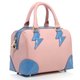 MIN 头层牛皮拼接闪电保龄球包 利用复古做旧的牛皮和明亮度高的漆皮产生设计碰撞效果 25 cm x 16cm x 19cm 配有可拆卸肩带