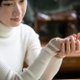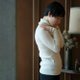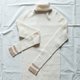 基底的米白色能自然提亮肤色,袖口的米色部分使用了带有茶色棉絮的纱线,自然的袖口罗纹为整体增添了活泼的气息。