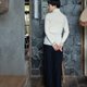 向内折叠也能让颈部线条更俐落,推荐这样穿着。