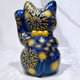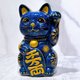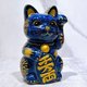 清水烧招财猫以深邃的青墨色为底色,犹如夜空般神秘且稳重,搭配金色的花火图案,仿佛烟花绽放瞬间的华丽闪耀✨。