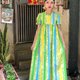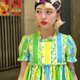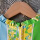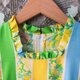 - Vintage 黄绿蓝相间花朵棉质短袖洋装