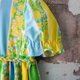 Vintage 黄绿蓝相间花朵棉质短袖洋装