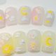 - 半透明奶雾基底映着柔粉与淡黄, 小花、云朵与月亮在指尖静静相遇。 细致微闪如星尘落下,温柔却不单调。 全手工绘制,每一片都略有不同, 像被月光轻轻祝福的小小护符。 适合想在日常中保留可爱、 也相信温柔本身就是一种魔法的你。