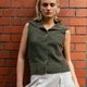 排扣背心,可作为高领、小翻领或大翻领穿着