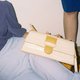 - 原创设计 头层牛皮 奶油色鳄鱼压纹 碰撞搭配美国小牛皮 法棍包