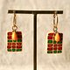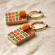 缤纷几何造型垂坠耳环 材质:聚合物黏土、玻璃珠、黄铜、钛金属针 尺寸:从耳洞垂下约 4.5 厘米 几何方块约 2.3 × 1.8 厘米