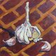 Garlic painting, original vegetable oil painting for kitchen, small oil painting