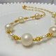 纱织小姐甄选出7颗直径最小11.8mm最大11.8mm的大颗粒香槟金色菲律宾金珠,将其与 S925银14k注金配件和6枚4-4.5mm天然淡水baby珍珠按秩序排列,由S925银14k注金磁吸扣连结成约42cm长的自带奢华感项链。大颗粒的香槟金色菲律宾金珠稀有美好,皮光细腻,虽有微瑕和微生长纹,但整体呈现出的香槟金色的天然美好,细腻动人,带给你如太阳般美好的金色光芒,美得不可方物。