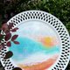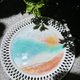 用环氧树脂直接在陶瓷碟上创作了一幅夕阳的海潮作品。难忘的是太阳的光影部分和云彩的融合。整体的感觉是被温柔的颜色包围,形成了一个舒服疗愈的作品。