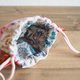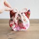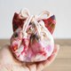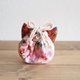 A mini-sized drawstring pouch that fits in the palm of your hand. Mimi uses silk fabric / brocade weave, which is the most suitable for the flower fabric of the main body, and both have a quilt core, making it extremely comfortable to hold. You can put it in a bag or use it as a pouch for going out.