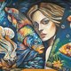 这些图形描绘了一个水下世界,里面有大型水母、色彩缤纷的鱼和藻类。海里可见水泡,反射着耀眼的阳光。所有元素均采用油画棒制作,赋予影像明亮饱和的色彩,营造出海底世界的深度感和神秘感。阴影和反射的形成增加了图形的真实感,增强了这个神奇而多彩的世界的存在感。