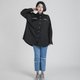 - 宽松版型、棉质混纺、肩膀造型裁片、袖口斜裁设计、口袋撞色设计、背后打褶。