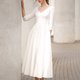 LERA 简约新娘礼服采用弹性 crepe 材质制作。这款 A 字廓形夏日鸡尾酒会礼服拥有自然腰线与 3/4 袖长(亦可选择长袖款式)。我们提供白色与象牙白供新娘选择,以及裸色系供婚礼宾客与伴娘着用。