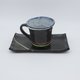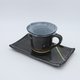 A set of gray cups and plates. The cup is lightweight and easy to hold. The lower part of the cup and the plate are lined with two-color glaze for a stylish finish.