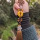 2.黄玉平安扣玛瑙花驼色穗挂饰的全长(不含提绳-从绳艺结到流苏尾长度)为34厘米,含提绳为44厘米,提绳长度可以调节。流苏长约21厘米。