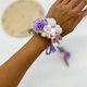 Bridesmaid bracelet consists of plenty real touch foam rose, tiny hendmade leaves< handmade polymer clay berries, realistic liooking lavender. It has adjustable base with loops on the ends where ribbon is situated. Corsage can be completed with matching hair comb and\ or matching boutonnière.
