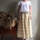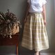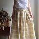 浪花假期*黄色系尼格子棉麻中长裙/抽绳折子裙