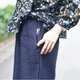 ✦放一只猫在口袋-深蓝纯棉刺绣牛仔松紧直筒短裙