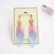 耳针/耳夹式-可改胸针发饰-梦幻真丝纱叶子粉蓝色拼垂坠耳环垂吊耳环