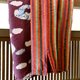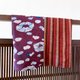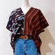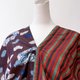采用日本古董布料,隽永的绿红黑紫条纹与半抽象紫色底蓝色花朵组合,展现浓厚江户町家风情。衣服正面背面皆可穿着,衣服下摆有开岔设计,随性优雅,想正面扎进裤头做造型也很适合。