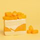 - 整条蛋糕约使用了两颗半的新鲜台湾爱文芒果制作而成, 再佐上师傅以法国ELLE&VIRE鲜奶油特制出口感不甜腻又滑顺的生乳奶黄酱慕斯,芒果控的最爱!