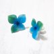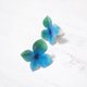 Bluegreen Hydrangea in high quality titanium stud earrings with pearl. This danty earring piece can be made in delicate high-quality titanium stud earrings or gold-tone clip-on-earrings.