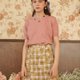 - 在黄色底的格纹上,印上了若隐若现的小雏菊,比一般的格纹有趣又多了些少女味!