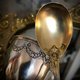 非常精致的纯银蛋杯,有原装盒及食蛋匙,杯的内原及匙面的正反两面都有镀金,外表有可爱的蝴蝶结绵延串起的雕刻,上面皆有法国纯银Minerva印记,高贵且典雅,非常难得的古物。