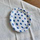 在手作蛋型小盘上,不规则又自然的蓝点在白皿上跳跃,就像日常里的小快乐~