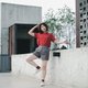 # The sleeve is not too short or too long. You can match with trousers , shorts , jeans or any skirt.