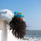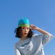 ◆头巾采热转印制作,呈现色彩缤纷且不意褪色的设计