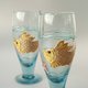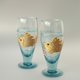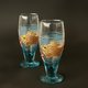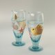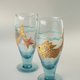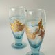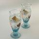 蓝色眼镜 2 件套,手绘。金鱼设计,水效果,海星贝壳。可爱的鸡尾酒、啤酒、果汁杯,独一无二,随时可出货!