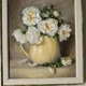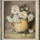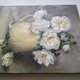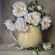 静物画与白色玫瑰果花束在一个小花瓶里。