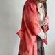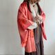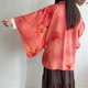 日本制和风花朵印花珊瑚粉红古着羽织和服外套-H483