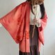 - 日本制和风花朵印花珊瑚粉红古着羽织和服外套