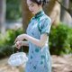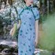 - 【蓝调玫瑰】 新中式復古/古法双襟旗袍