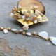 材料:樱花花瓣贝壳片、铜质配件、铁质弹簧夹、天然淡水珍珠(不完美)、半宝石(不完美)、捷克水滴珠。