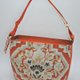 A remake of a band with floral embroidery using gold etc. in astringent orange,
