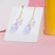 **嫩粉、嫩紫水珠双胞长垂坠式耳环,14K 镀金银链条。**