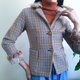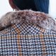复古 1950 年代羊毛粗花呢千鸟格西装外套,带毛皮饰边,经典夹克