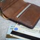 - YOURS手工皮件 直式真皮短夹 5卡+照片袋+L小夹 蓝色皮革+深木色