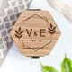 - A wedding engagement ring box is made of natural wood! The rustic ring bearer box is made of Oak. The wedding engagement ring box will be a great addition to your Big Day! The wooden ring box comes with personalization! Please write the names and dates for engraving. Also, select the font number and engraving. If the font and engraving are not selected - I